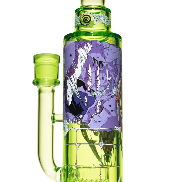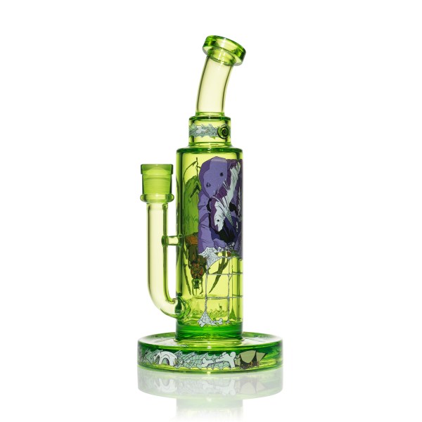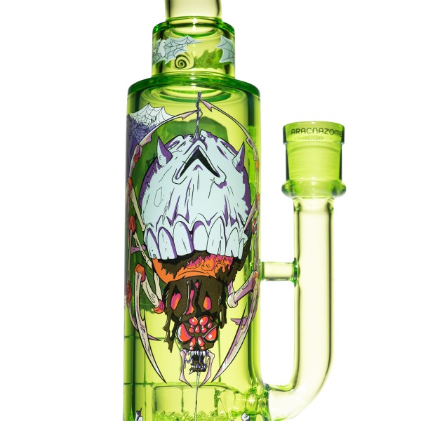 Introducing the 9.5″ Arachna-Zombie rig from the ‘Colony Wars’ collection. This stunning piece features a downward showerhead perc and fine decal details throughout, bringing to life the terrifying Arachna-Zombie and its intricate webs.