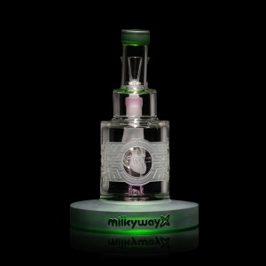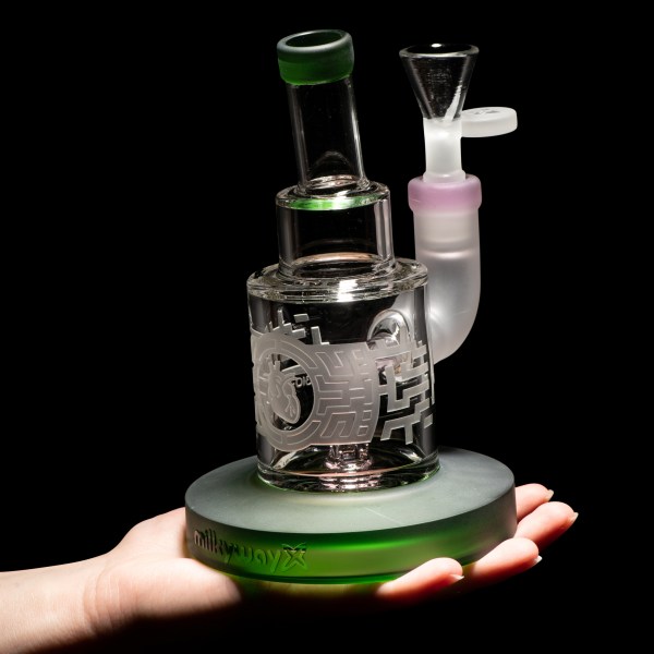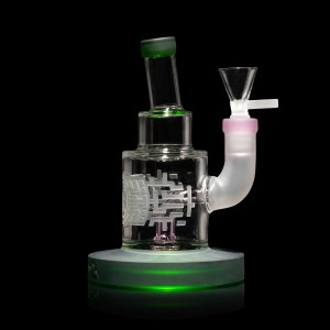 6″ mini dab rig with cone bowl and wide base to accommodate accessory expansion.