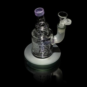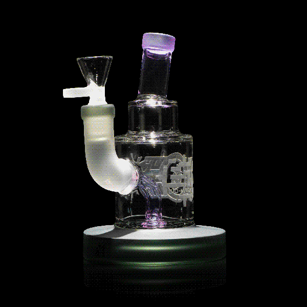 6″ mini dab rig with cone bowl and wide base to accommodate accessory expansion.
