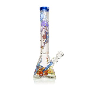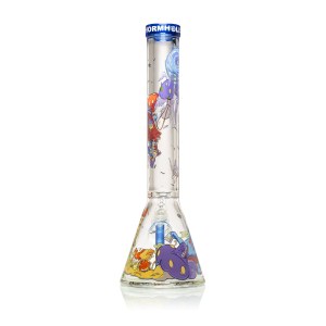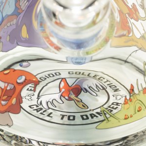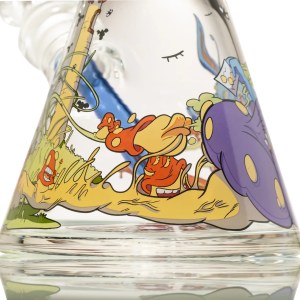 Call to Danger is the most cinematic release yet in the Fungido collection. At 16 inches tall, this towering beaker showcases rich, high-temperature decal artwork that wraps around the tube like a living story. This piece offers exceptional functionality with elevated visuals. The extra-tall design allows for a cooler, smoother pull, while the artwork brings the mysticism of Fungido to life in surreal detail. The high-temp decals are fused into the glass during production, ensuring lasting vibrancy and heat resistance.