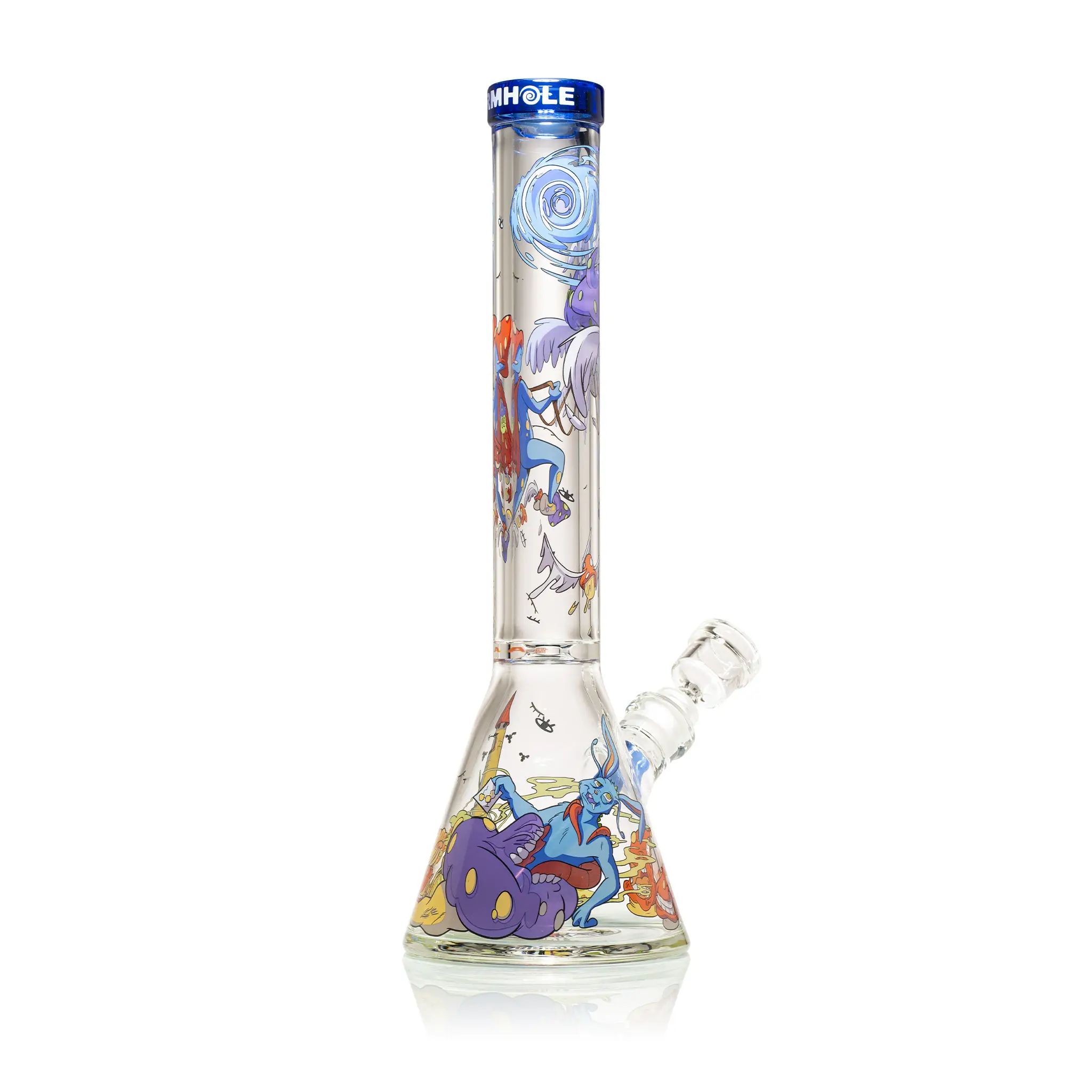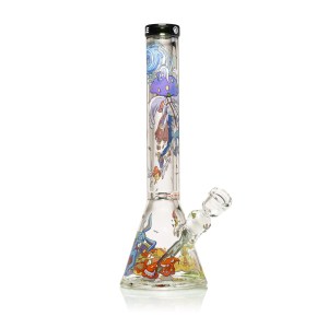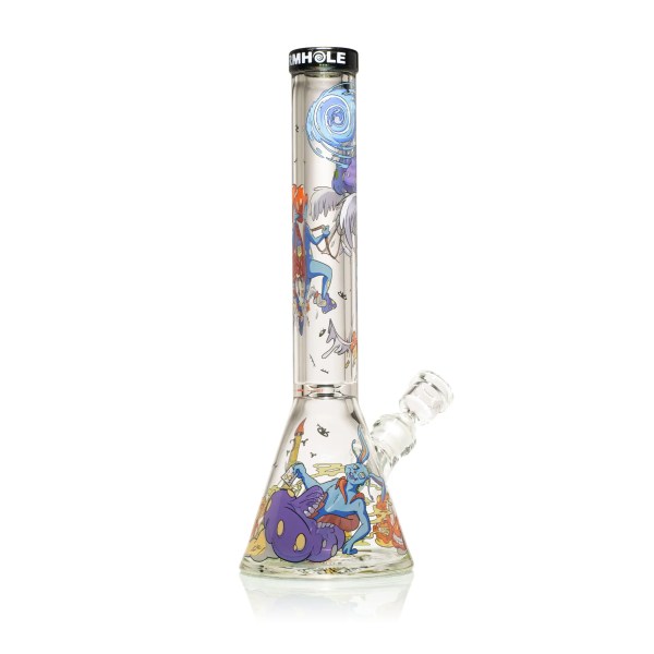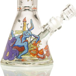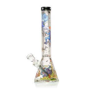 Call to Danger is the most cinematic release yet in the Fungido collection. At 16 inches tall, this towering beaker showcases rich, high-temperature decal artwork that wraps around the tube like a living story. This piece offers exceptional functionality with elevated visuals. The extra-tall design allows for a cooler, smoother pull, while the artwork brings the mysticism of Fungido to life in surreal detail. The high-temp decals are fused into the glass during production, ensuring lasting vibrancy and heat resistance.