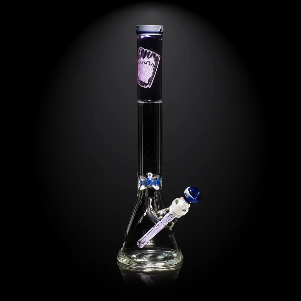 Part of the Skullduggery Collection, this 16″ beaker depicts the ‘Curse of the Saint’ card in intricate detail. This card first appeared in the original ‘Skull Emperor’ beaker back in 2020 and is the first card drawn by King Horan in his card game with Death.