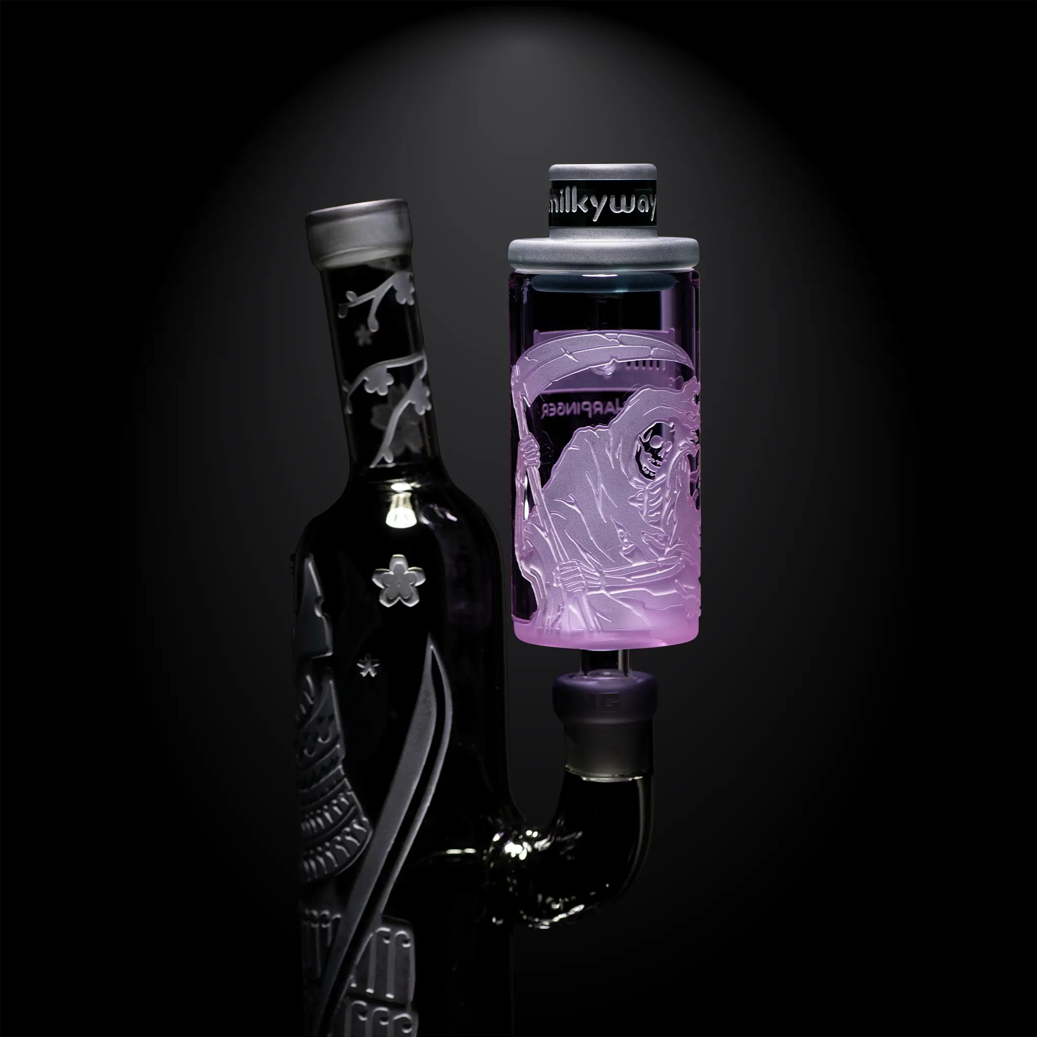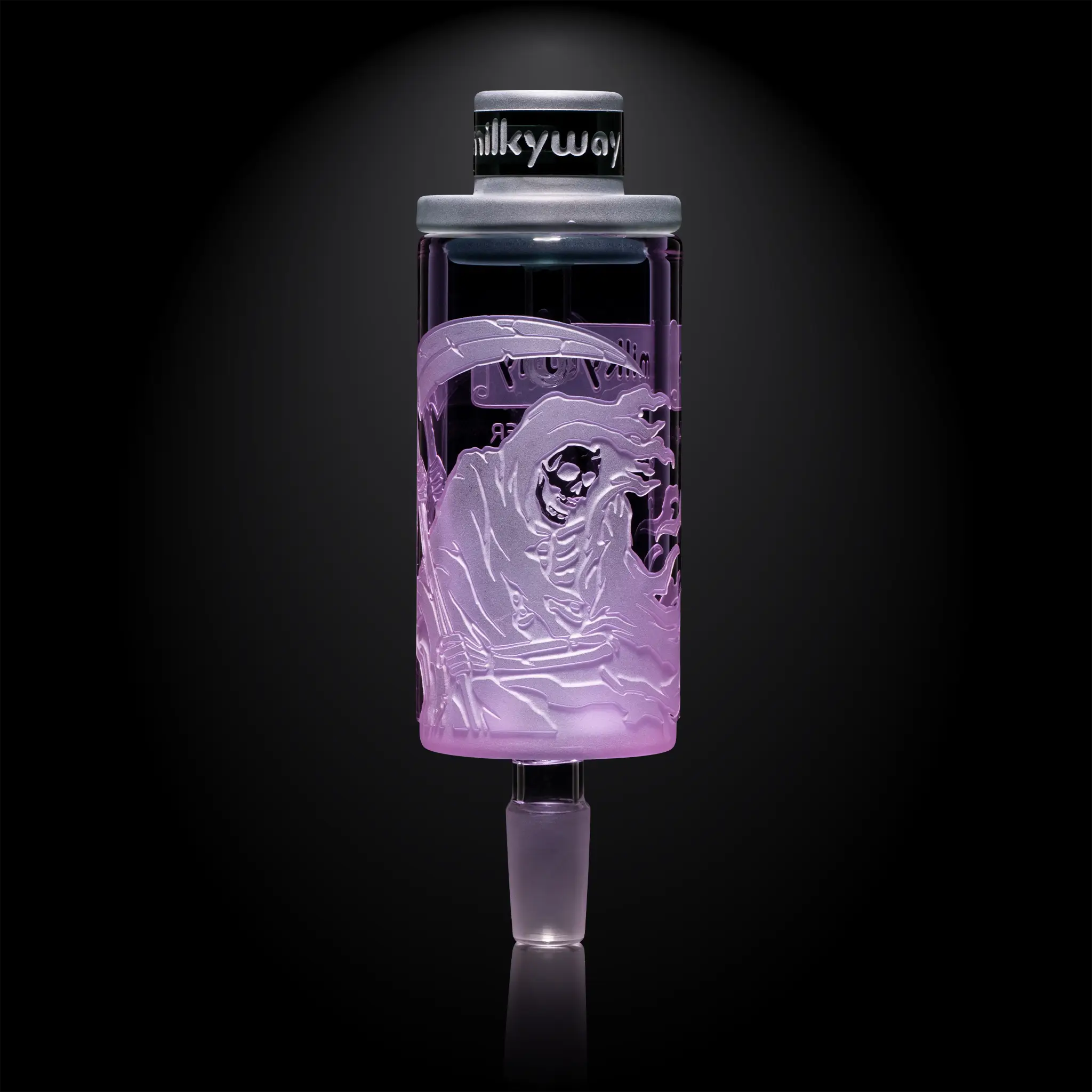 The Hash Harbinger is a haunting addition to the Skullduggery collection, merging function with Milkyway’s signature dark artistry. Designed to transform any 14mm joint waterpipe into a high-performance hash rig, this adapter ensures smooth, refined hits with every use. Featuring our rarely seen Grim Reaper—the Harbinger of Death—this piece is etched in stunning double-layer sandblast, packed with intricate details that bring the legend to life. A must-have for collectors and hash lovers who appreciate the darker side of design.