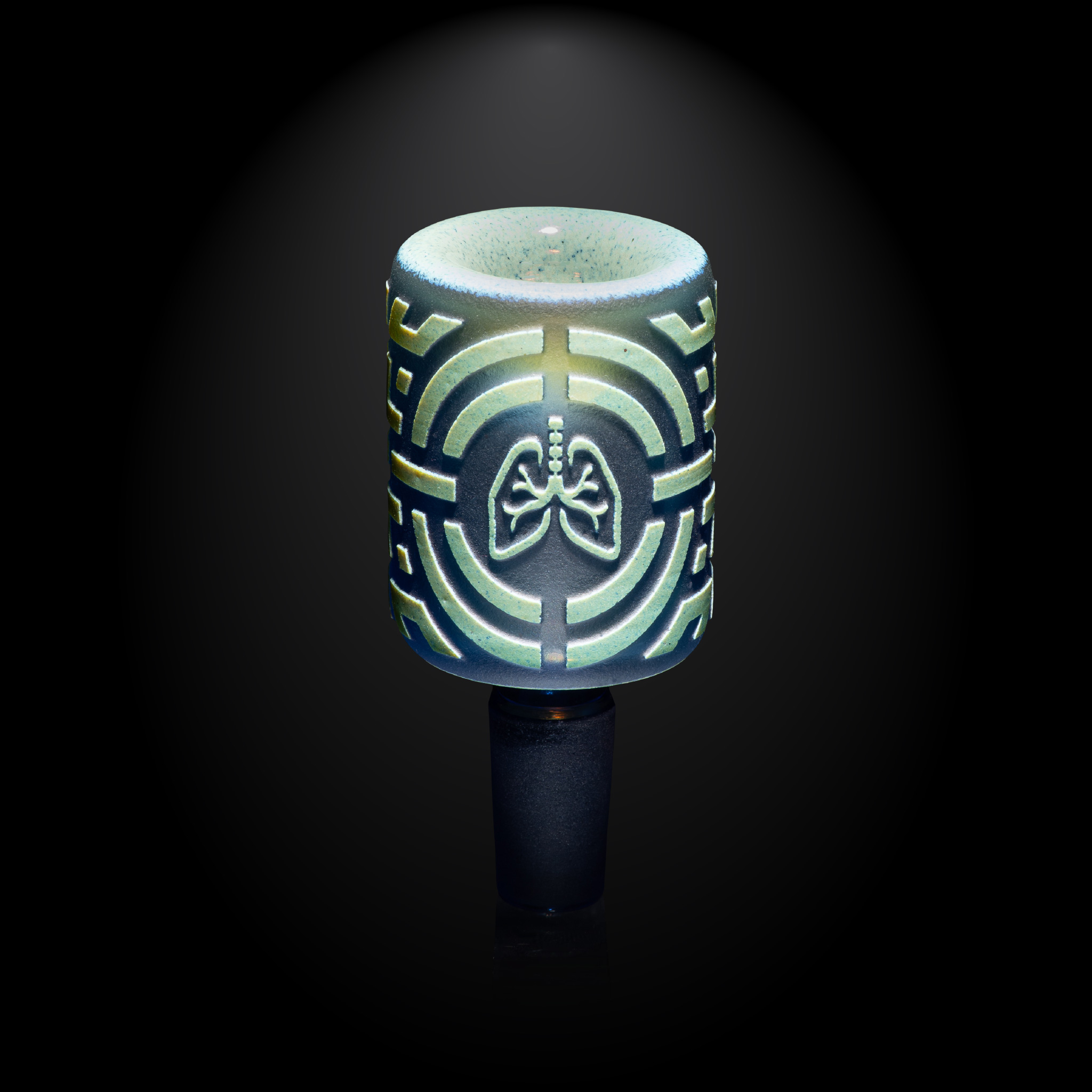 This frit layered bowl was designed specifically to match the Resonance beaker. It is part of the Bio-Tech collection, a series designed with the intention of creating the perfect anti-slip grip. It features our signature Lungs icon and is sandblasted deep.
