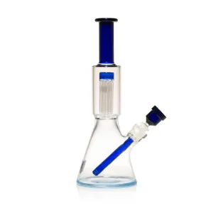This elegant 14” beaker showcases a perfectly balanced design, highlighted by complementary colored glass sections that create a bold yet harmonious visual statement.