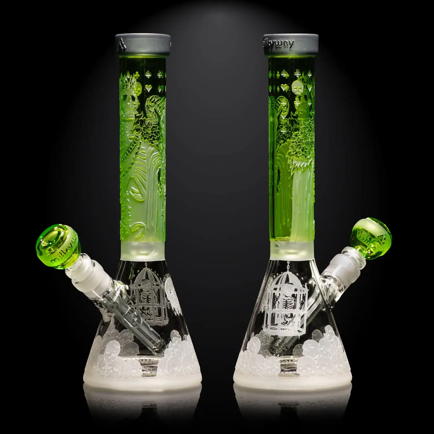 To mark the 2 year anniversary of the ‘Unholy Coronation’ beaker, we have released a special limited edition version in slime titled ‘SLIME LORD’. Only 100 have been made of this version, it has some small changes that differentiate it from the original release in 2022, such as the Slime Lord insignia, making it a rare collectible. NOTE: this version will NOT be re-released.